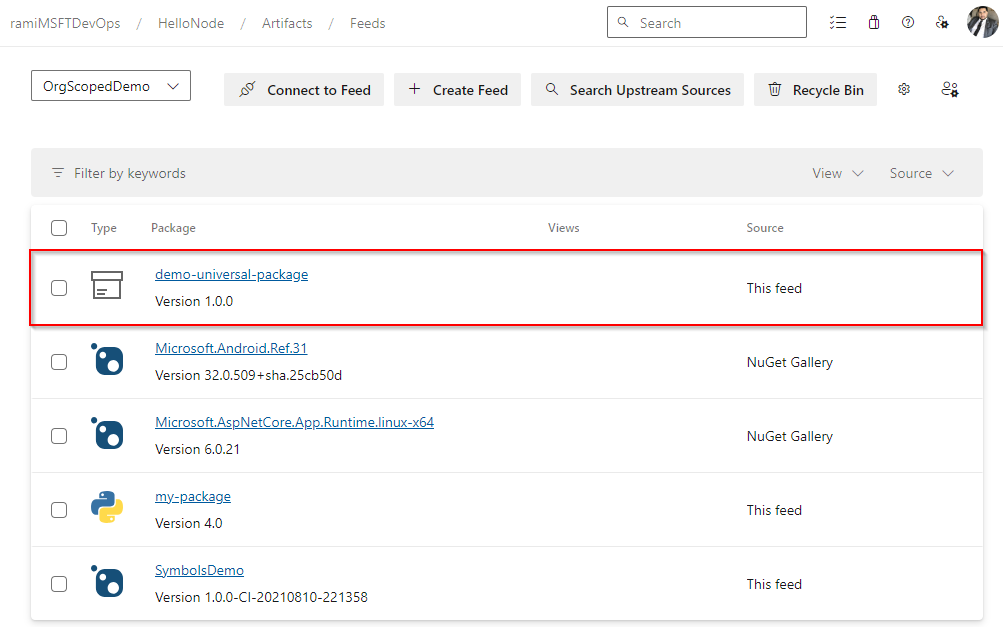 Select Artifacts, and then select your feed from the dropdown menu. Once the publishing process is successfully completed, your package should be available in your feed.