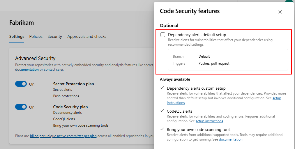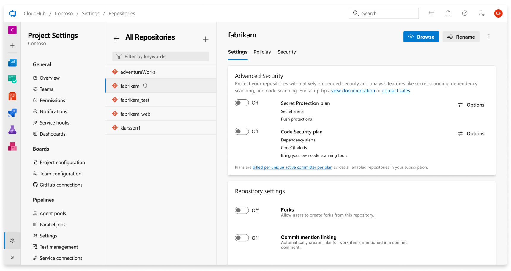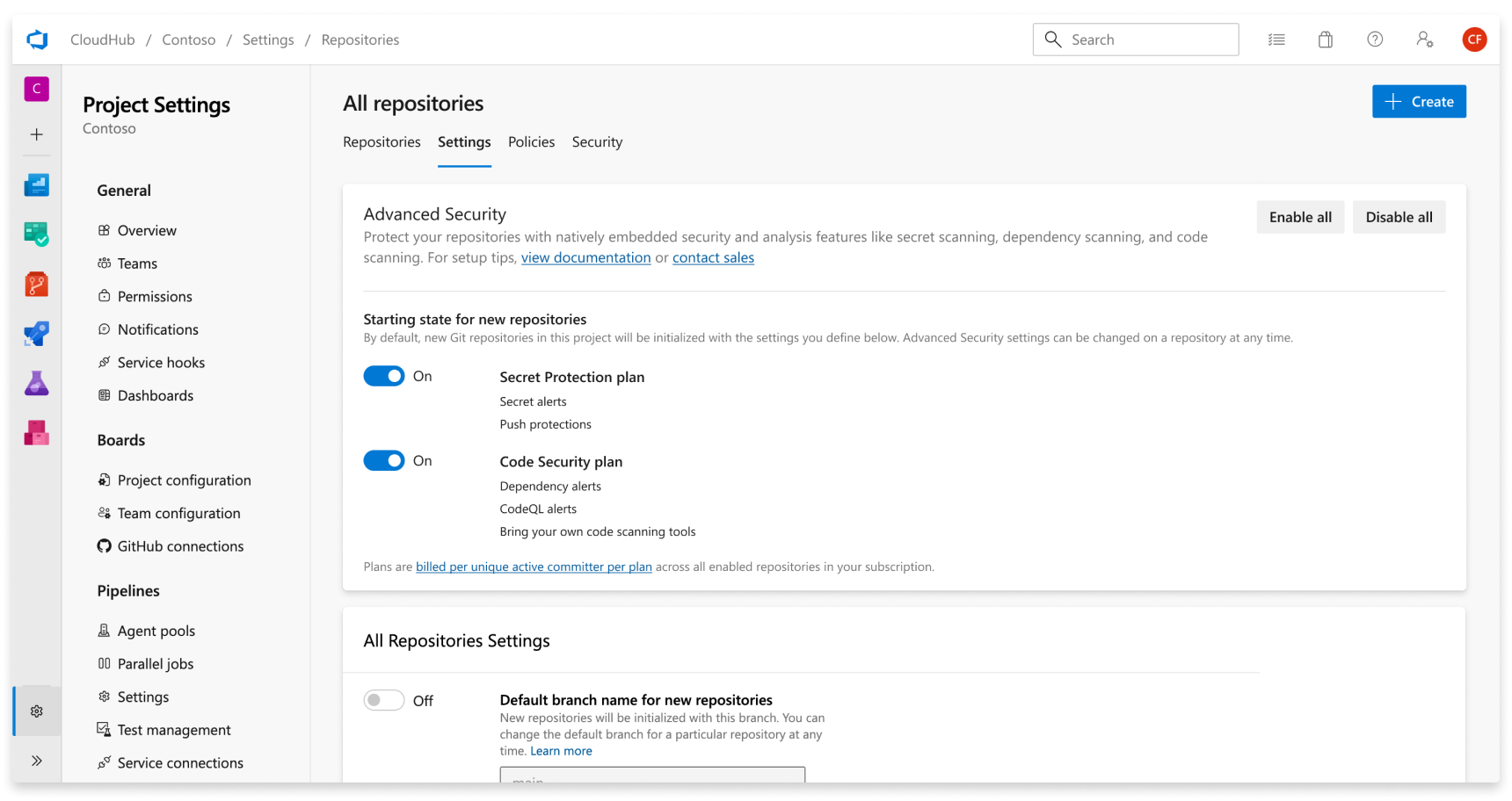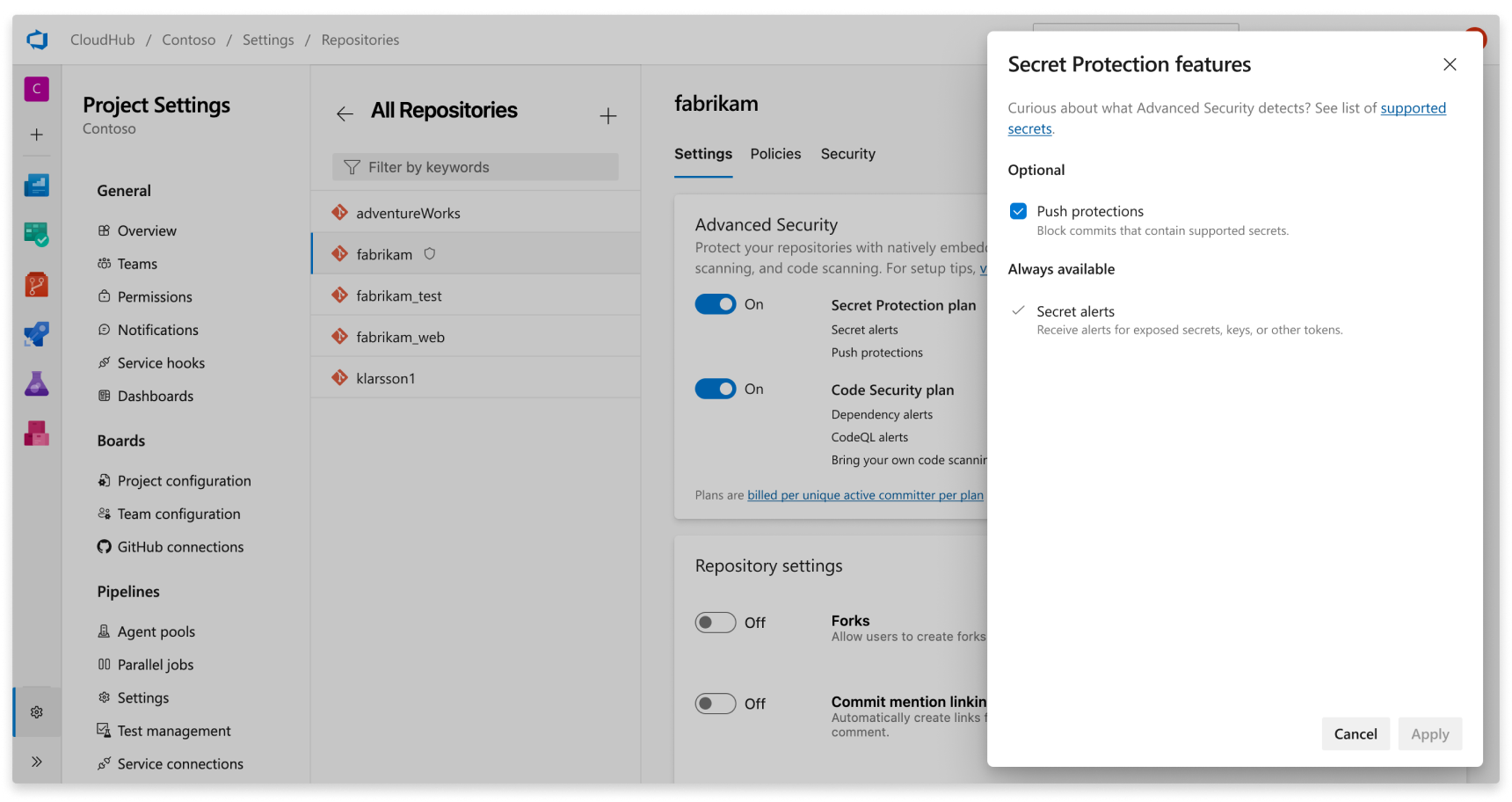 You can bring the protection of Advanced Security to your enterprise with the flexibility to enable the right level of protection for your repositories. GitHub Advanced Security for Azure DevOps is available as GitHub Secret Protection for Azure DevOps and GitHub Code Security for Azure DevOps.