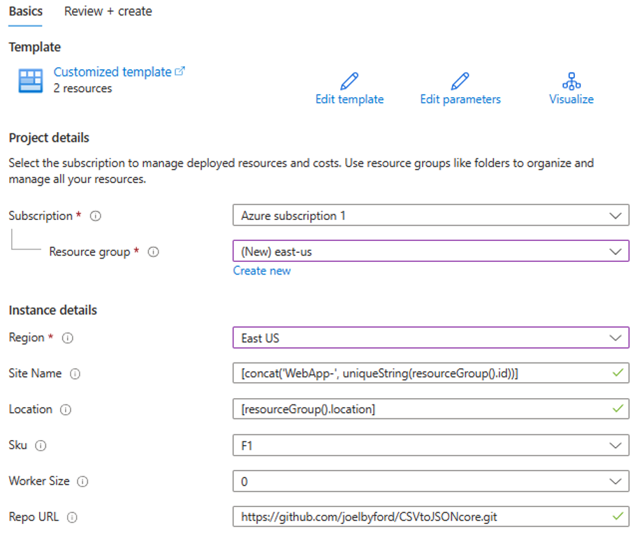 Select "Review and Create" option to start the deployment.