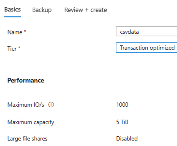 - Select "File share" menu option and create a new file share.