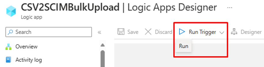 - In the "Generally Available" version of the Logic Apps designer, select on Run Trigger to manually execute the workflow.