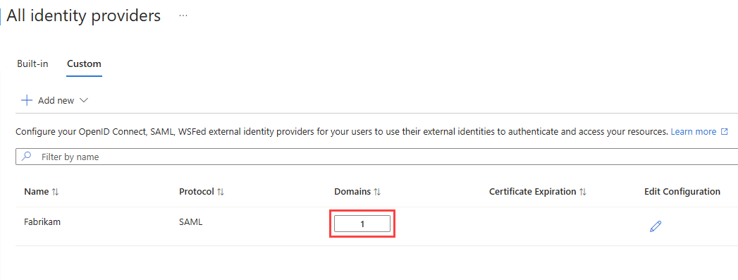 (Optional) To add more domain names to this federating identity provider:
