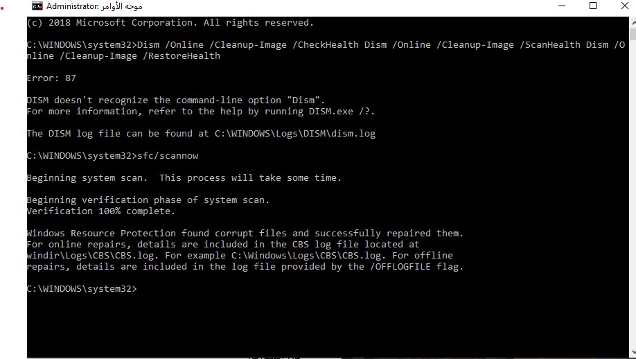 اذا لم تساعدك الخطوات اعلاه ، فقد تكون هناك بعض ملفات النظام التالفة وسنحاول اصلاحها من خلال اتباع الخطوات ادناه: