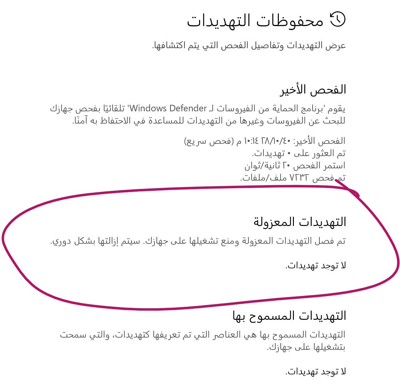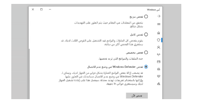 ايضا يمكنك استخدام Windows Defender في وضع عدم الاتصال عبارة عن أداة فحص فعّالة تعمل من دون اتصال ويتم تشغيلها من بيئة موثوقة من دون بدء نظام التشغيل. يصف هذا الموضوع كيفية استخدام Windows Defender في وضع عدم الاتصال في Windows 10 الرجاء الضغط هنا للمزيد من المعلومات كما موضح فى الصورة المرفقة ادناه :