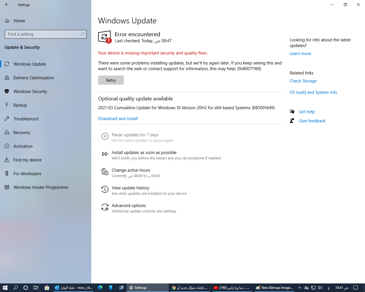 - قم باستخدام مستكشف أخطاء Windows Updateومصلحها والمتاح من خلال الضغط هنا.