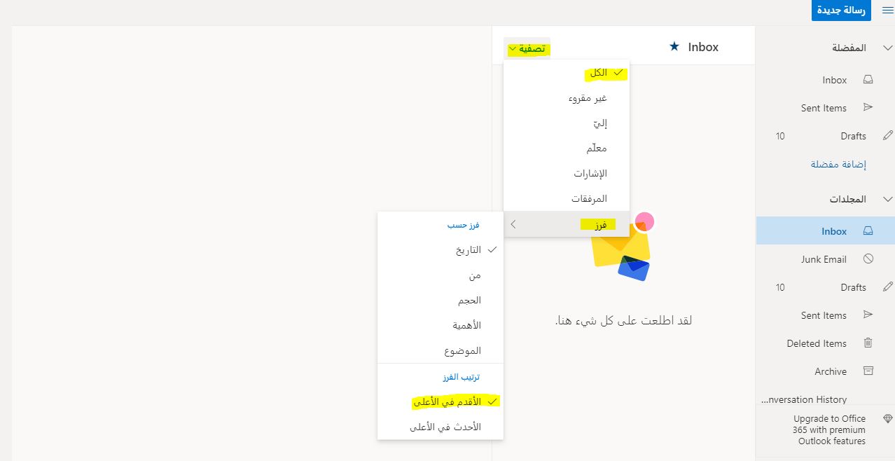 لاظهار كل الرسائل يجب عليك اختيار "الكل" فى التصفية.