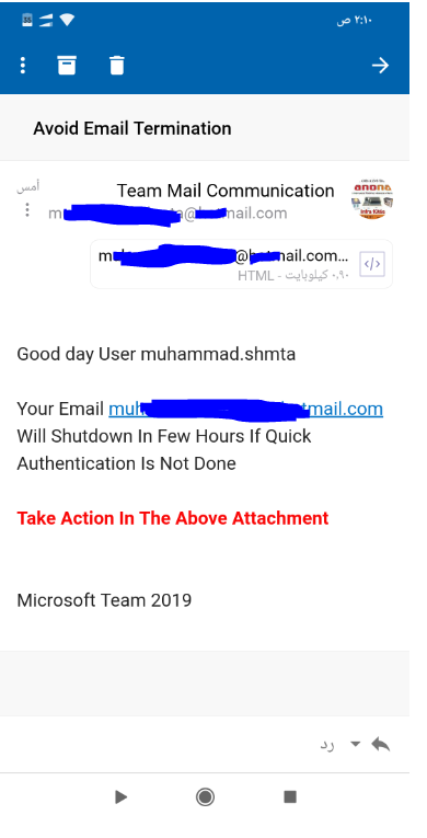 يرجى العلم ان الرسالة الذي تلقيتها مزيفة و ليس لها صلة بشركة Microsoft، وأنصحك باتخاذ الإجراءات التالية: