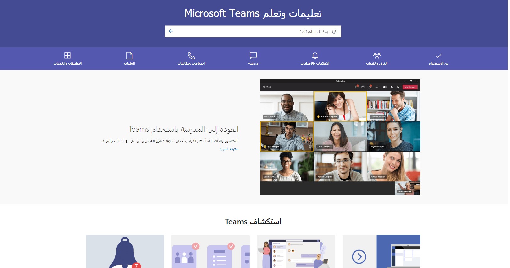 هناك ستجد فريق متخصص للاجابة عن المسائل المتعلقة بـ Teams للتعليم، هذا المنتدى الأن باللغة الانجليزية فقط اذا أحتجت أي مساعدة بالترجمة يمكنك الاستعانة بمترجم Bing . لاننا هنا لدينا محدودية الدعم بخصوص مسائل Microsoft Teams.