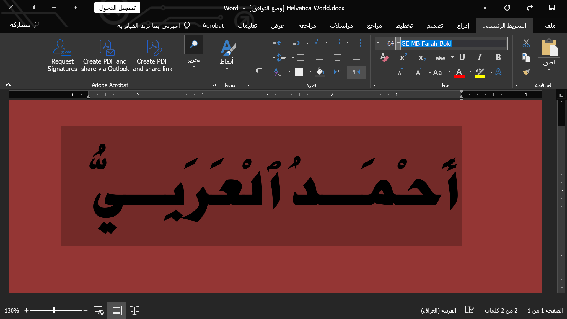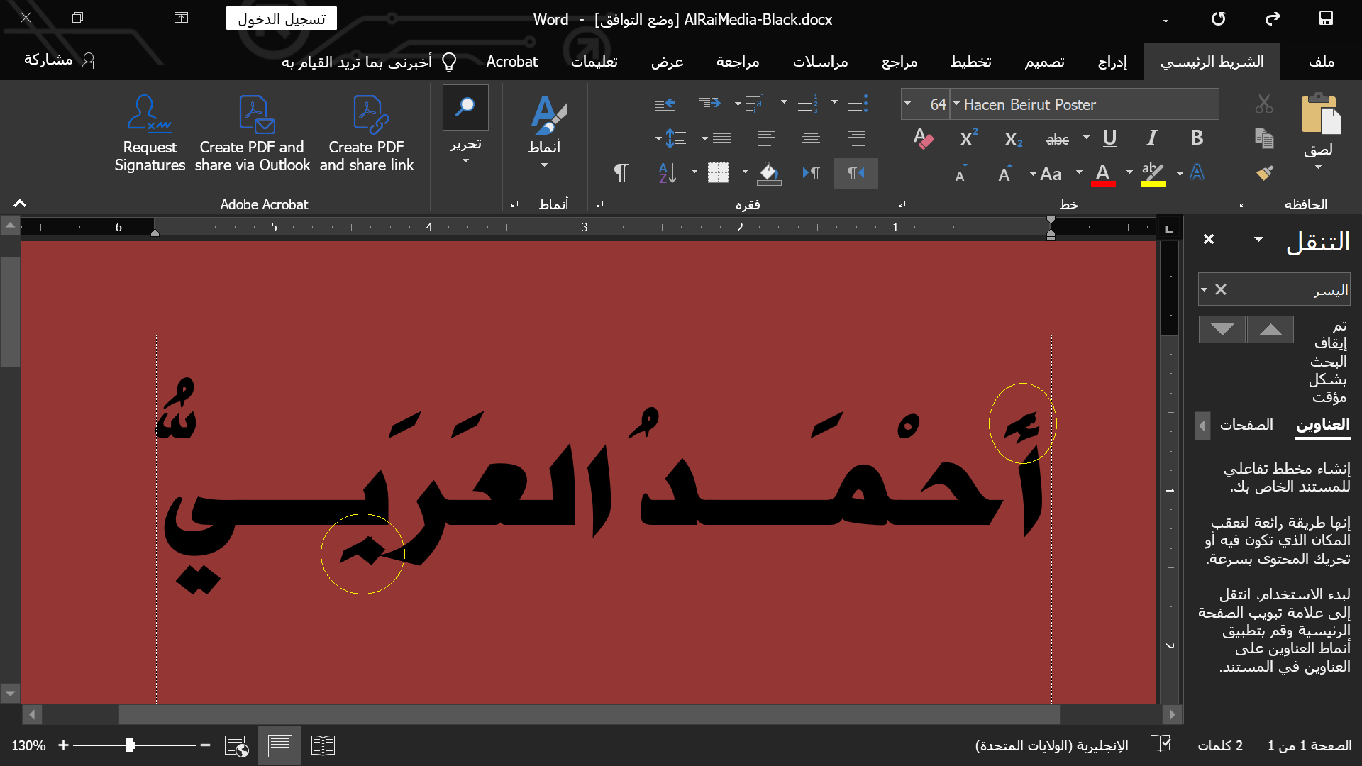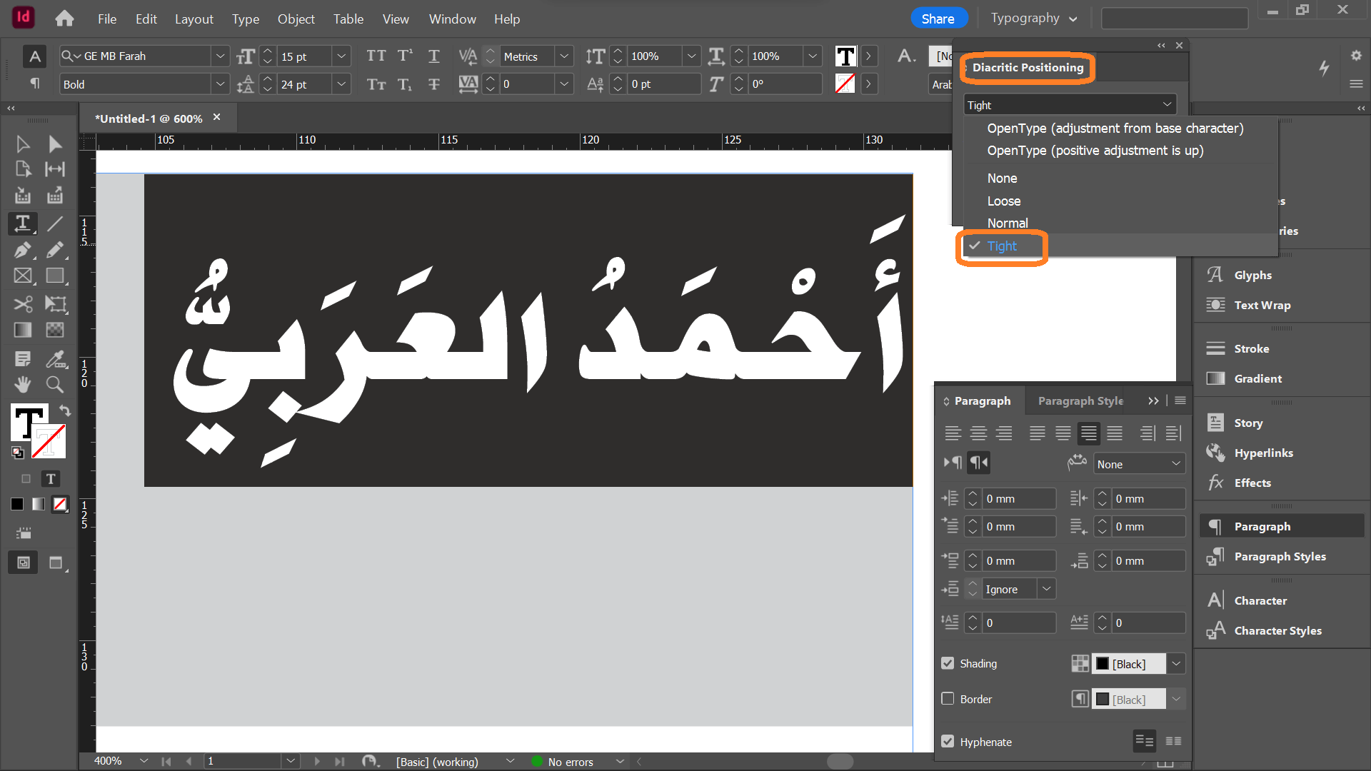 للمساعدة في العزل، يرجى محاولة استخدام نفس الخط المستخدم في Adobe InDesign for Word إذا كان متاحا.