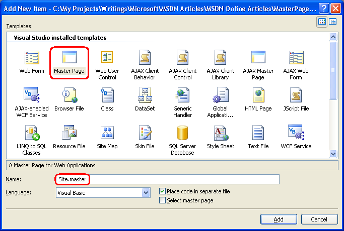 Now that we have discussed how master pages work, let's take a look at creating a master page and associated content pages using Visual Web Developer.