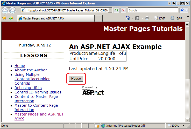 Step 2: Using the ASP.NET AJAX Framework from a Content Page