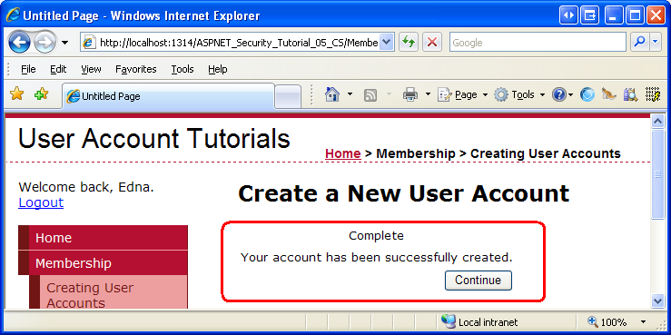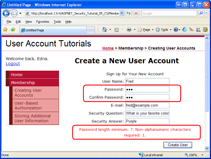 CreatingUserAccounts.aspxUserBasedAuthorization.aspxEnhancedCreateUserWizard.aspxAdditionalUserInfo.aspxGuestbook.aspx