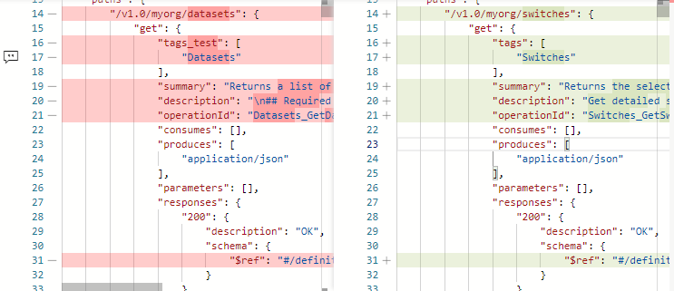 When viewing the difference for a single selected file, there's a file size limit of 5 MB. To view and diff files larger than 5 MB, you can download the file and view it using a local diff tool. When viewing the difference for a collection of files, the size limit for each file is 0.5 MB, for performance reasons.