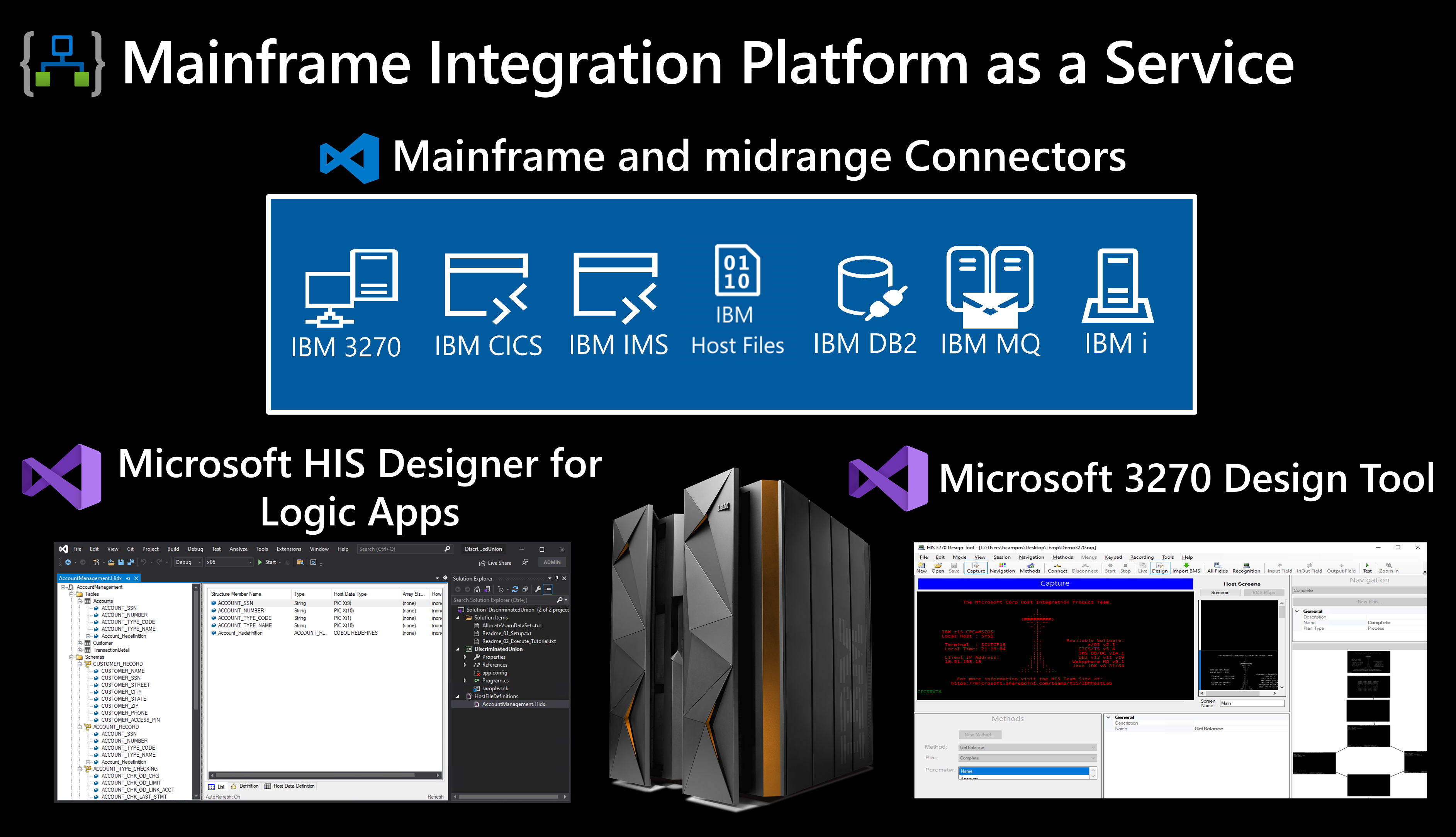 بالنسبة للمؤسسات التي لديها استثمارات في الأنظمة المركزية والوسطى، وهذا يعني الاستفادة الأفضل من الأنظمة الأساسية التي ساعدت في إرسال البشر إلى القمر أو ساعدت في بناء الأسواق المالية الحالية وتوسيع قيمتها باستخدام السحابة والذكاء الاصطناعي (الذكاء الاصطناعي). هذا السيناريو هو المكان الذي تلعب فيه Azure Logic Apps وإمكانياتها الأصلية للتكامل مع الأنظمة المركزية والوسطى الدوران، من خلال فتح الباب أمام العالم الذكاء الاصطناعي للاستثمارات القديمة. من بين ميزات أخرى، تتضمن Azure Logic Apps القدرات الأساسية لخادم تكامل المضيف (HIS)، والذي تم استخدامه للتكامل المركزي والوسطى في قلب عملاء Microsoft الأكثر استراتيجية على مدى أكثر من 20 عاما. ونتيجة لذلك، أصبحت Azure Logic Apps نظام أساسي للتكامل كخدمة (iPaaS) للأنظمة المركزية والوسطى.