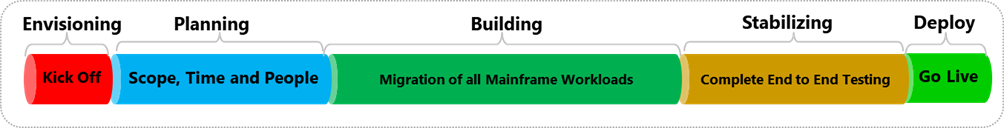 الاستقرار أو الاختبار: يبدأ عند اختبار البيئة والتبعيات والتطبيقات التي تم ترحيلها مقابل مناطق الاختبار في بيئة الكمبيوتر المركزي.