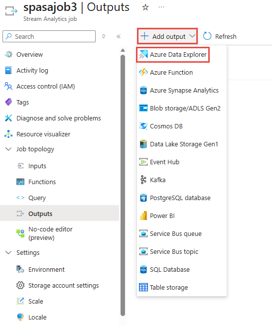 - ✔️ يتم تكوين مخرجات Azure Data Explorer في وظيفة تحليلات التدفق