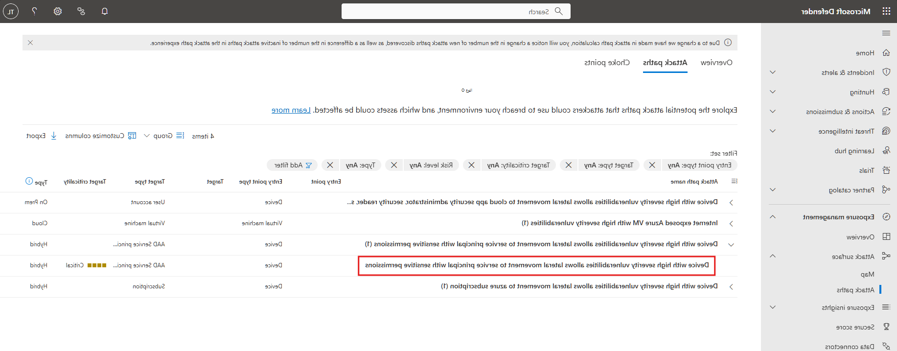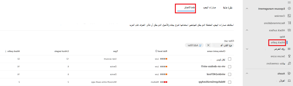 انتقل إلى مسارات الهجوم surface > Attack لإدارة > التعرض.