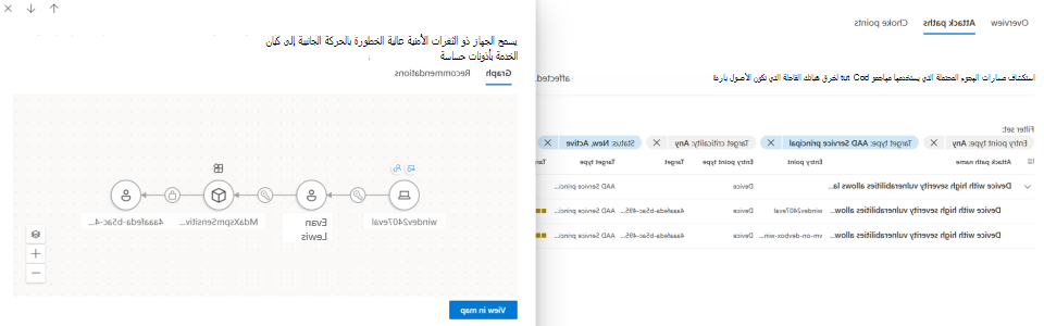 - تحديد الأصول المتصلة بمسارات الهجوم الأكثر.