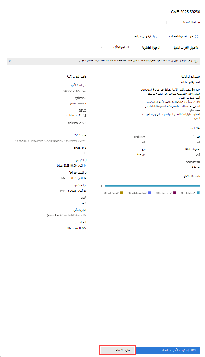 - CVE بدون تصحيح (استثناءات CVE فقط): لا يتوفر تصحيح من المورد.
