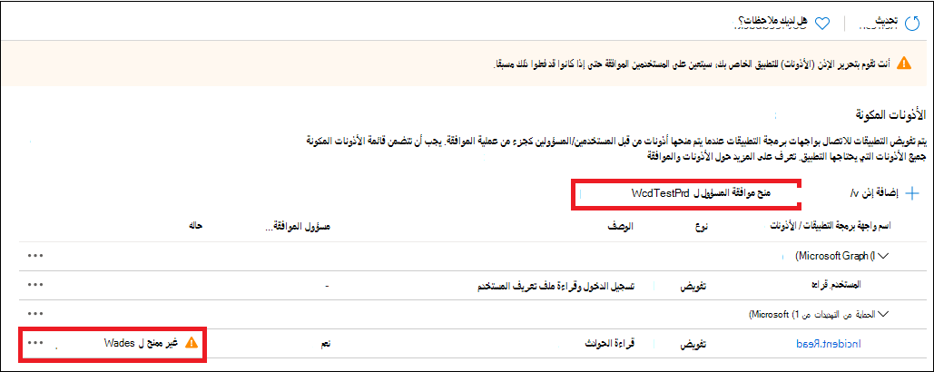 حدد منح موافقة المسؤول. في كل مرة تضيف فيها إذنا، يجب عليك تحديد منح موافقة المسؤول حتى يصبح ساري المفعول.