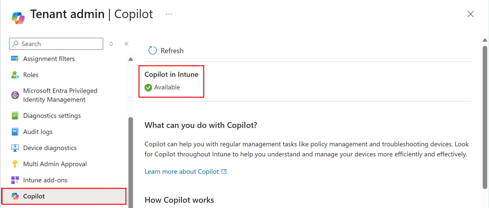 For more information about using Copilot with your devices, go to Use Copilot in Intune to troubleshoot devices.