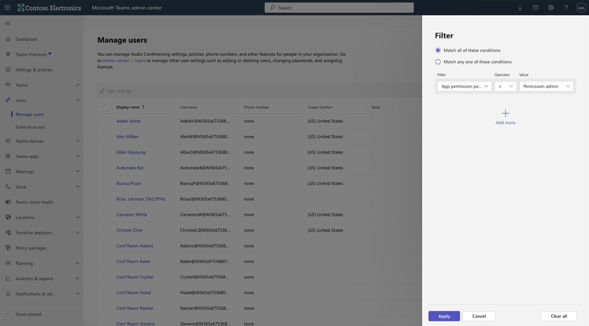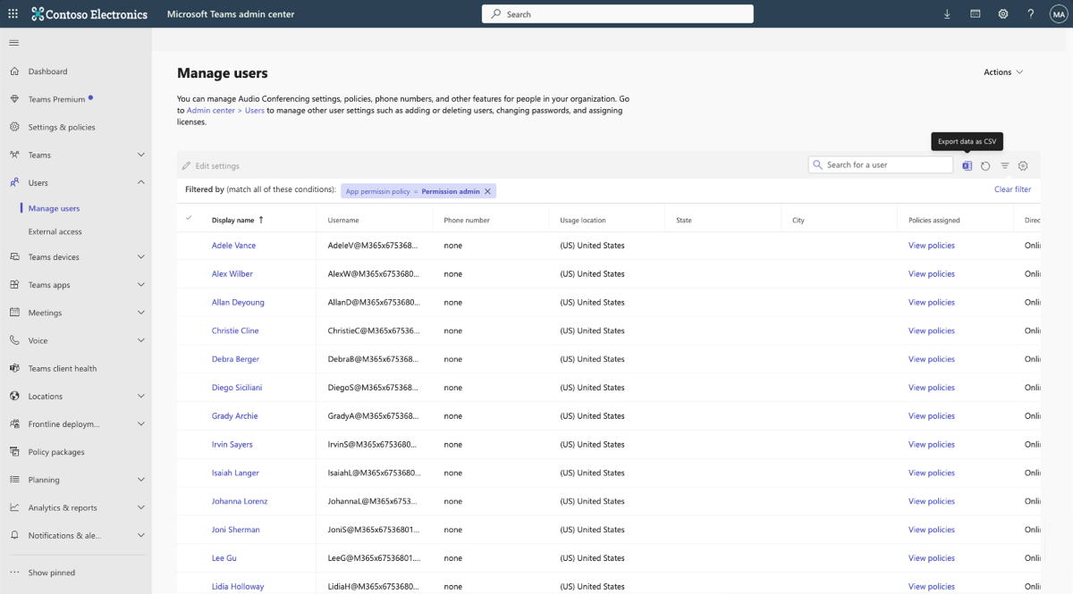 - Go to Teams admin center > Manage apps > Permission policies.