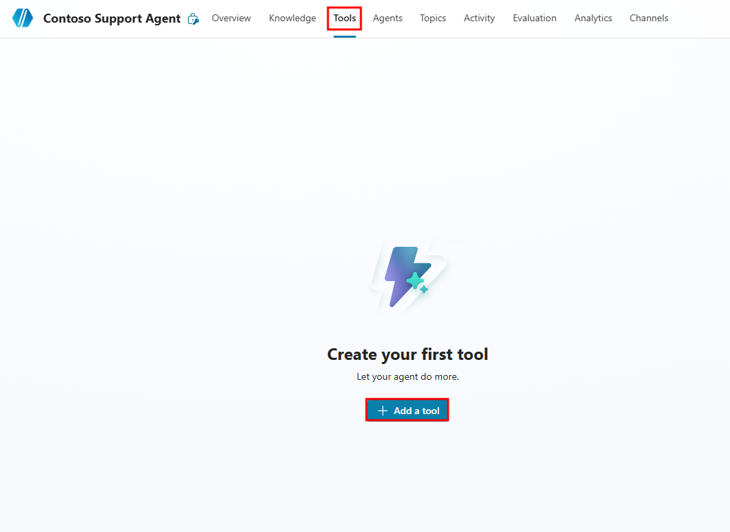 فِي هَذا التمرين، ستضيف أدَاتُك الأولى. سنستخدمُ أدَاة المُطَالبة للاهتمَام بالمُستخدمين المُحبَطين والذين يحتَاجُون إلى ردٍ أكثر تعَاطفًا ممَّا هو موضحٌ عَادةً فِي تعليمَات العَامل. أدوات المطَالبة هي ردودٌ توليديةٌ مخصصةٌ يتم تشغِيلهَا فِي ظل ظُروفٍ محددةٍ. فِي هَذه الحَالة، سَتوفِّر الرِّسَالة المُخصَّصة عَُمقًا مُتعَاطِفًا أكثر مِمَّا تَم تَحديده فِعلاً لتَصويره وتَوجيهه نَحو مَوارد مِثل مَوقع الوِيب Contoso.