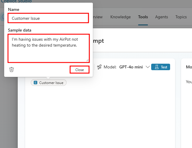 I'm having issues with my AirPot not heating to the desired temperature.ثمَّ حدّد إغلاق لإضَافة الإدخَال إلى التعليمَات الخَاصة بك.الآن بَعد أن قُمت بِتَكوين إدخَال، يُمكنك صِيَاغة مَجموعة تَعليمَات تَهدف إلى استخدَام هَذا الإدخَال كَمَحتوى دِينَاميكي، واستِبدَال فُقَاعة Customer Issue بمطَالبة المستخدم.