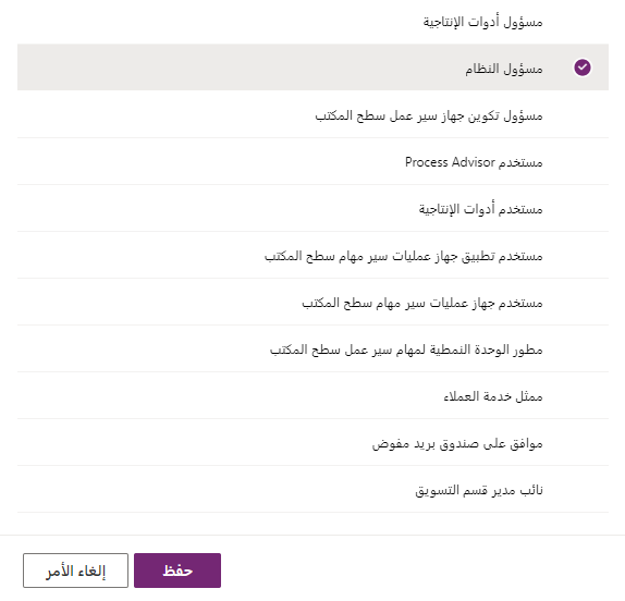 يوجد ارتباط إدَارَة الأدوار فِي الجزء السفلي من الأدوار. حدده.