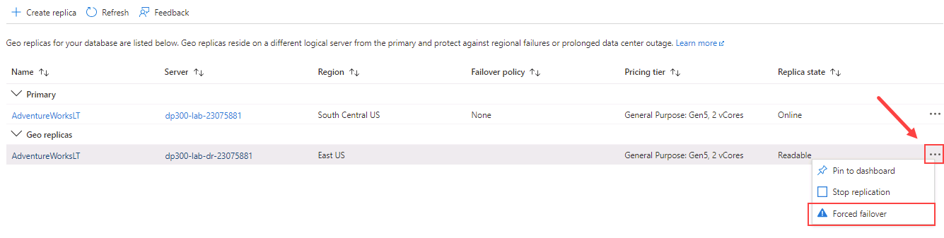النسخ المتماثل الجغرافي غير متزامن، ما يعني أنه قد يكون هناك بعض التأخر في البيانات بين قواعد البيانات الأساسية والثانوية. أيضا، يجب تحديث سلسلة الاتصال التطبيق بعد تجاوز الفشل.
