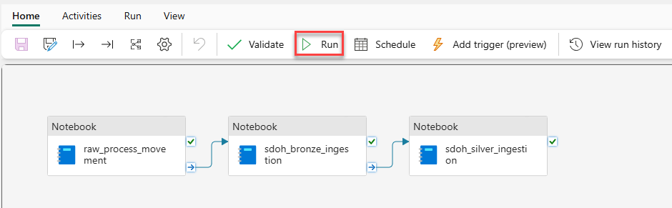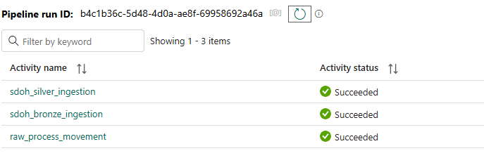 حدد مساحة العمل التي قمت بإنشائها. حدد موقع مسار بيانات FLHealthcare_msft_sdoh_ingest وحدده.