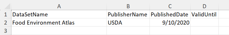 يمكنك استكشاف الأمثلة السابقة من خلال النظر في إدخال FoodEnvironment_USDA_2017 في نموذج البيانات. يتضمن مجلد البيانات النموذجي في lakehouse مجموعات بيانات عامة متعددة تحتوي بالفعل على بيانات التعريف المطلوبة للابتلاع التي يمكنك استيعابها على الفور في OneLake للاستخدام. يمكنك أيضا جمع مجموعات بيانات SDOH الخاصة بك وتكوينها لتكون متوافقة مع الاستيعاب عن طريق إنشاء بيانات التعريف السابقة. في وحدة إعداد مجموعات البيانات العامة في مجموعات بيانات SDOH - التحويلات ، يمكنك التعرف على مجموعات البيانات التي تم تكوينها مسبقا وكيفية استخدامها.
