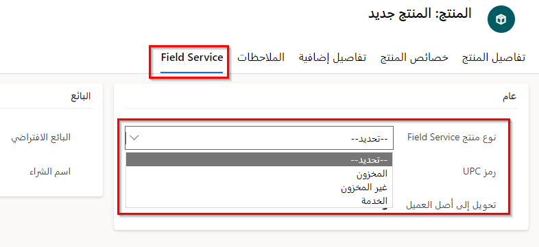 إذَا لم تقم بتعيين خيَار نوع منتج الخدمة الميدَانية عَلى سجل المنتج، فلن تتمكن مِن إضافة المنتج أو الخدمة إلى نوع الحدث.