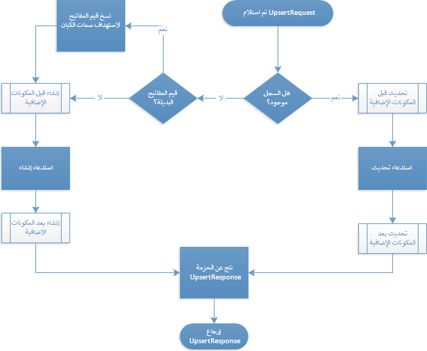 استخدم رِسَالة Upsert لتبسيط مَنطق التَّكَامل عِندمَا يَكون من غير الواضح مَا إذا كَان الصَّف مَوجودًا بِالفعل أَم لا فِي Dataverse.