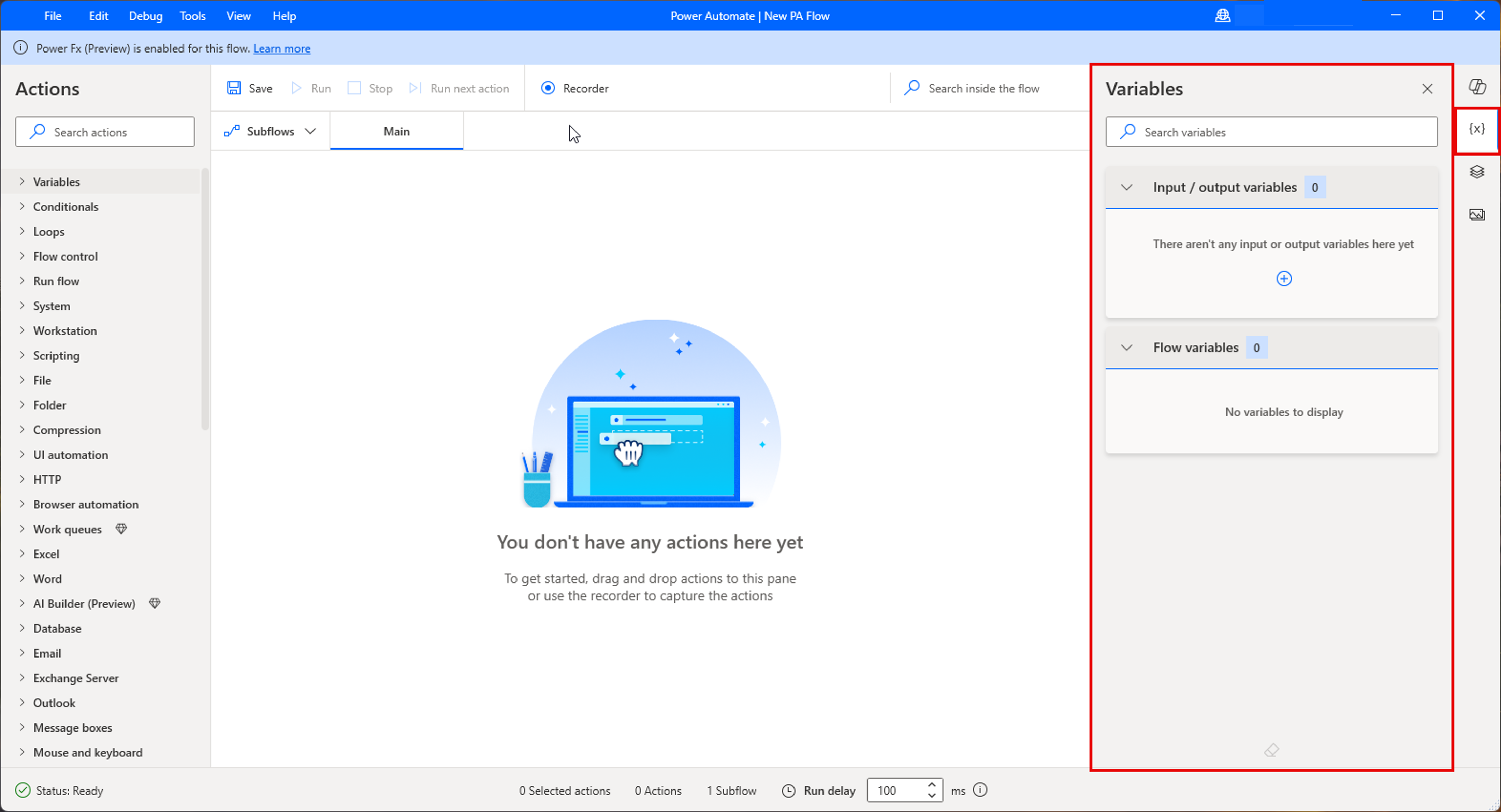 أثنَاء تشغيل إجرَاءَات الأعمَال تلقَائيًا، قد تقوم بإنشَاء تدفقَات معقدة تحتوي عَلى إجرَاءَات متعددة. يسمح Power Automate لسطح المكتب لك بتبسيط هذه التَدفُّقَات وإجرَاء اختبارَات أسهل مِن خلال تدفقَات فرعية.