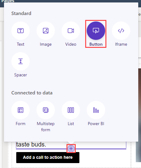 إذَا لزم الأمر، حدد علامة الجمع (+) الموجودة أسفل النَص ثم قم بإضَافَة زر جَديد، أو حدد الزر الموجود أسفل الفقرة الموجودة.