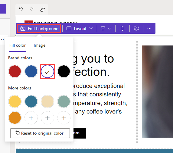 إذَا لم يكن هنَاك عمود بالفعل، فحدد علامة الجمع (+) ثم أضف فاصلًا أسفل القسم الذي يحتوي عَلى العمودين. حدد تحرير الخلفِية عَلى مكون الفاصل.