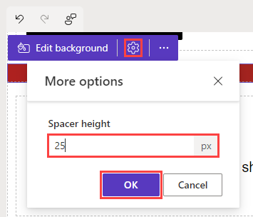حدد أيقونة الترس الموجود عَلى يمين تحرير الخلفِية، ثم قم بتعديل ارتفاع الفاصل إلى 25 بكسل.