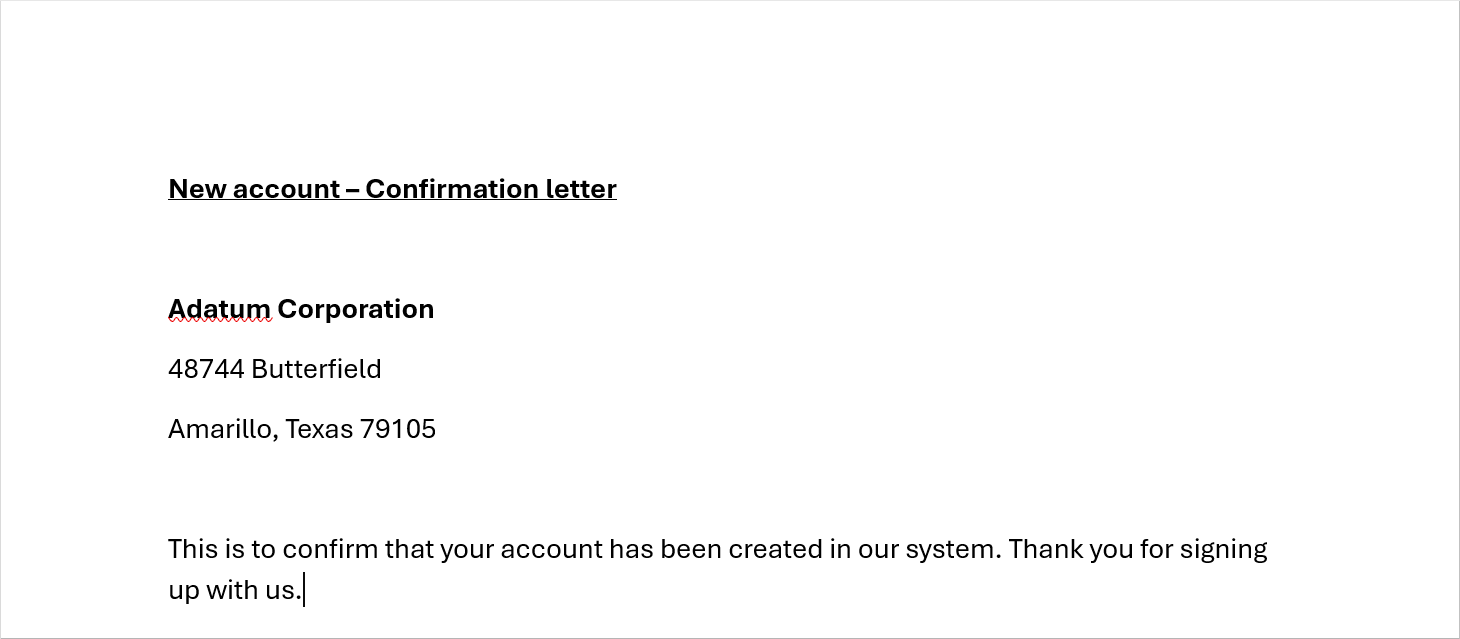 يستند المستند الذي تم تحميله إلى الكمبيوتر المحلي إلى القَالب، لكنهَا مليئة بالمَعلومَات ذَات الصلة مِن السجل المحدد. تُظهر لَقطَة الشَاشة التَالِية مثَالاً لمستند تم إنشَاؤه.
