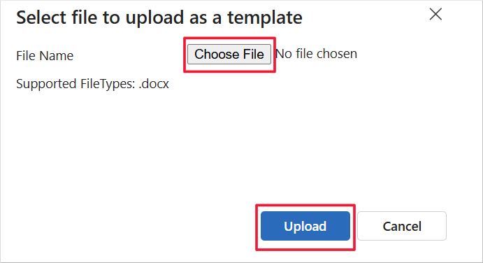 سيظهرُ نموذجٌ؛ فِي النَمُوذج، حدد اختيَار مِلف، وحدد القَالب المَحفوظ، ثم حدد تَحمِيل للمتَابعة.