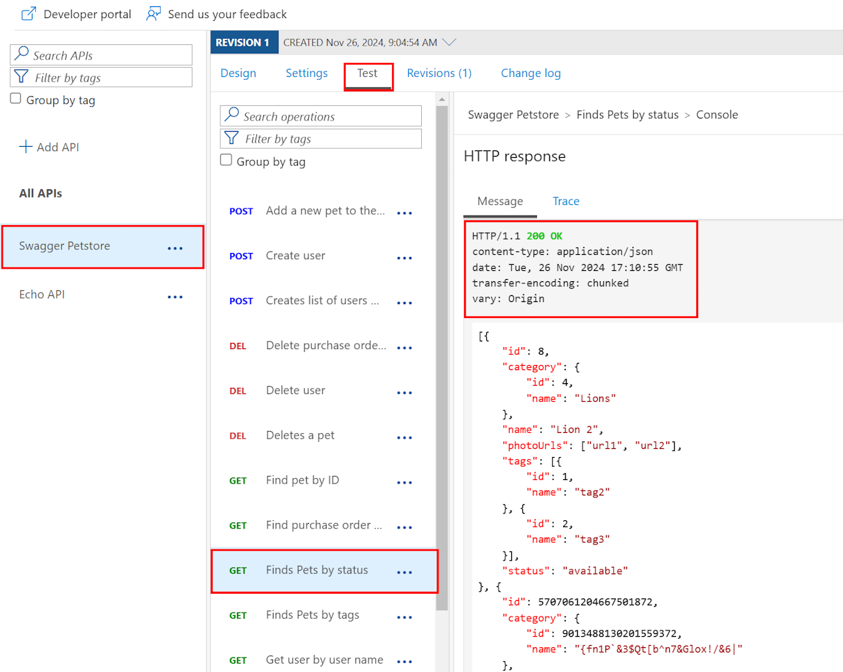 Select the GET Finds Pets by status operation, and optionally select a different value of the status Query parameter. Select Send.