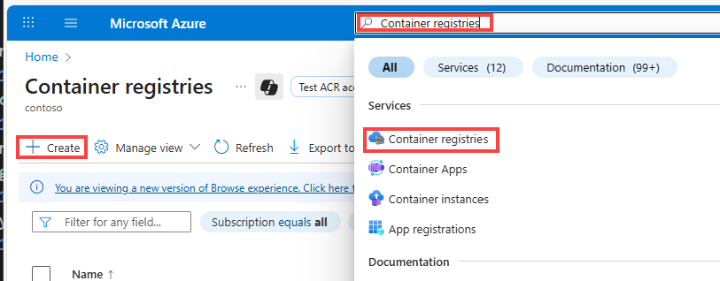 az acr createcommand. Replace<registry-name>with a unique name for your registry. The name must contain only letters and numbers, and must be unique across all of Azure.az acr create --name <registry-name> --resource-group msdocs-custom-container-tutorial --sku Basic --admin-enabled trueThe