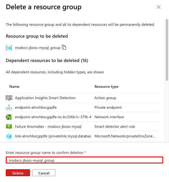 - In Resource group, select msdocs-jboss-mysql_group.
