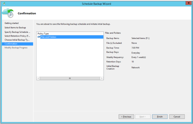 After the wizard finishes creating the backup schedule, select Close.
