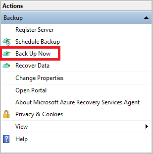 In the MARS agent, select Back Up Now.