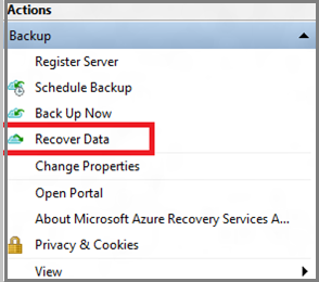 In the wizard, select Recover Data in the Actions Pane of the agent console to start the Recover Data wizard.