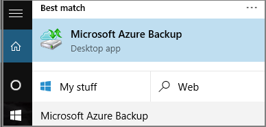 Open the Microsoft Azure Backup snap-in. You can find it by searching your machine for Microsoft Azure Backup.