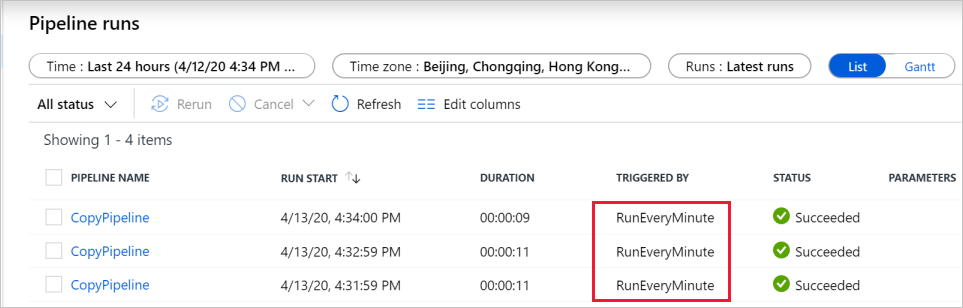To switch from the Pipeline Runs view to the Trigger Runs view, select Trigger Runs on the left side of the window.