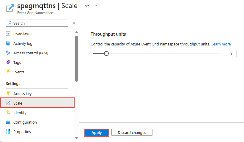 On the Event Grid Namespace page, select Scale on the left navigation menu.