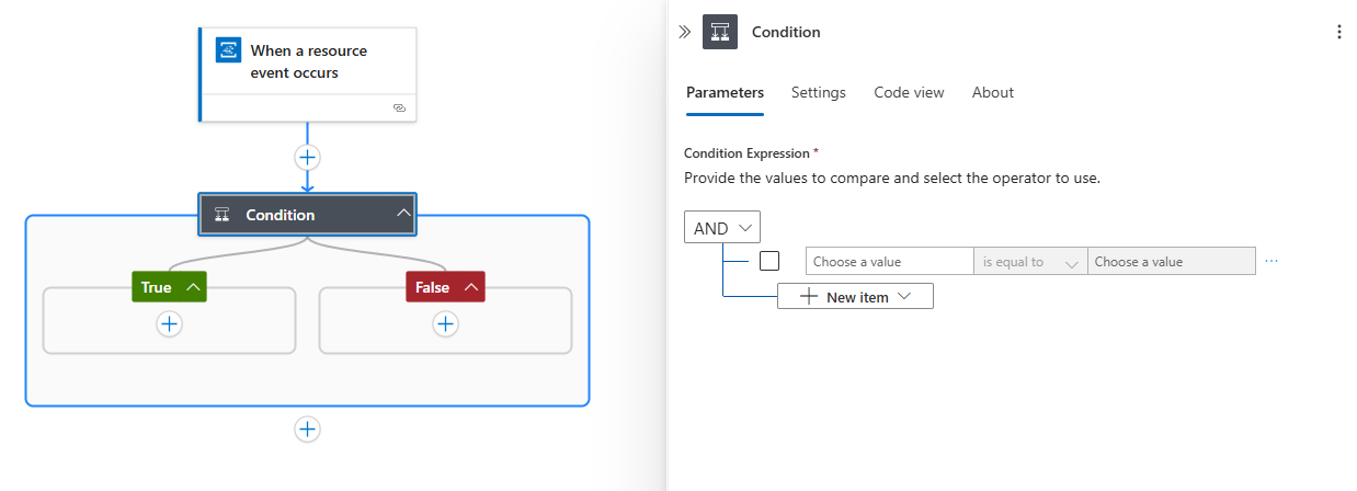 To run the actions in your workflow only when a specific event or operation happens, add a condition that checks for that event or operation. This tutorial checks for the Microsoft.Compute/virtualMachines/write operation. When this condition is true, another action in your workflow sends you an email that includes information about the updated virtual machine.